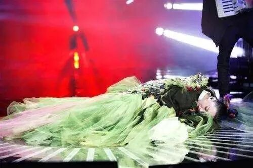 从阿根廷探戈到哥特式摇滚,从低语式倾诉到呐喊式高腔,整首歌在谭晶特有的“讲述”下,经历了彷徨无助,失意咏叹,欲望纠结,悲伤呐喊等多种变化,情绪炸裂引爆全场后,情到深处,她倒伏在舞台之上。