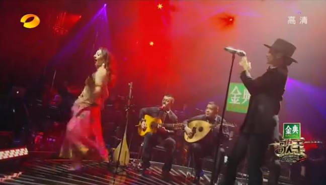 当身着传统新疆服饰的舞蹈家皮达古丽出现在舞台上,扭动着曼妙的身姿与身着西装的谭晶一起热舞之时,舞台上一“男”一女,一中一西,就像这首融合了民族音乐与世界音乐的歌曲一样,如此完美和谐,全场的氛围瞬间被推至高潮。
