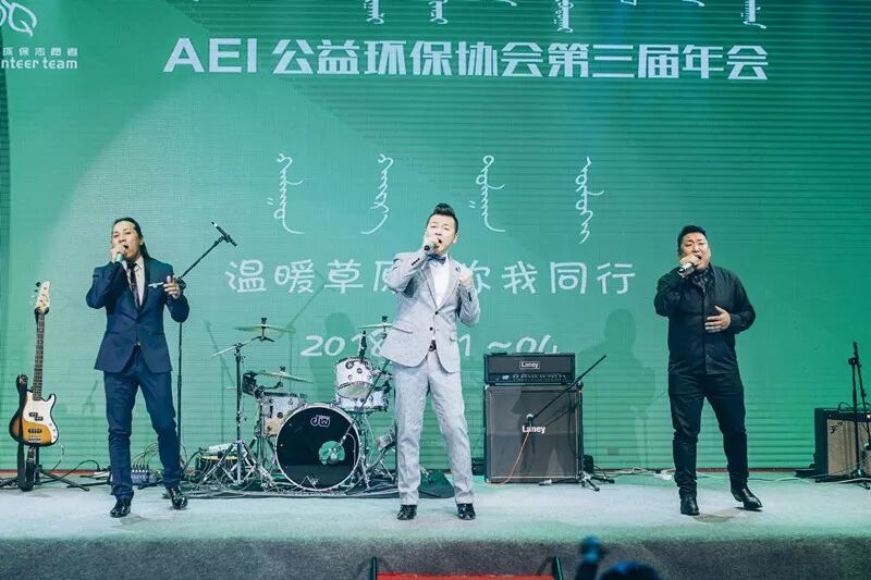 现场,黑骏马组合演唱了AEI公益主题歌曲《共同的家园》,该作品有蒙汉两版,汉语版由草原环保公益发起人、锕锷铱(AEI)公益环保志愿者协会会长白金作词,蒙古语版由著名蒙古族音乐人达布希拉图作词,《共同的家园》作曲由黑骏马组合阿拉腾布日古德担纲制作。