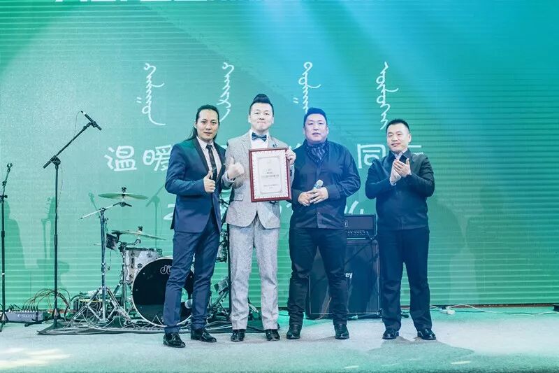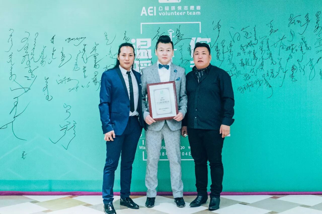 AEI公益环保志愿者协会第三届年会1月4日晚隆重举行,黑骏马组合被授予AEI公益环保形象大使称号,年会上有锡林郭勒盟团委书记周玉龙为黑骏马组合授匾。