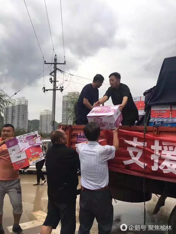 得知灾情,子洲籍歌手崔苗,崔锋铭和爱心人士薛军伟、李世平、李园园、艾先楼、何洁、张彦军及榆林爱心企业家们自发组织给灾区送去矿泉水450件,方便面400件,共计价值约2.3万元爱心物资。