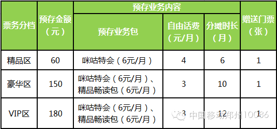 活动期间,郑州移动客户,在活动指定参与营业厅内现场开通(升级)咪咕特级会员,预存数据业务营销包费用,即可获赠门票哦~