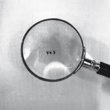 1966年小野洋子在伦敦办画展,,矗立着一架白色梯子,旁边系着一个放大镜,天花板上有一幅很小很小的画,必须拿放大镜才看得到。