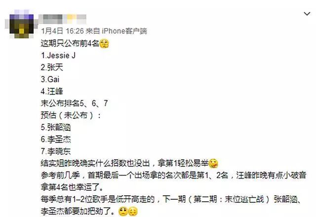 根据最新的剧透排名,张天首期就位列第二,仅仅略逊格莱美级歌手Jessie J。这个微博粉丝仅仅四位数的年轻歌手,能否像当年邓紫棋黄致列一样一炮而红呢?