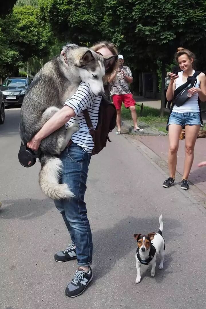 哈士奇,一种勇敢、无私的汪。遇到危险时它会迅速跳起,挡在你胸前,四脚立地,保护你的胸腔等重要部位不被攻击,同时发出"嗷呜~嗷呜“的叫声,提醒你扛着它迅速撤离......