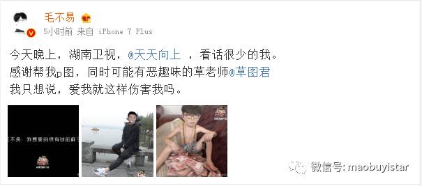今晚,新晋原创歌手毛不易首次做客湖南卫视《天天向上》,与熊梓淇、艾福杰尼三位新生代艺人组成正青春队,共同挑战由马苏、瞿颖、张双利组成的大前辈队,一同开启“青春修炼班”。
