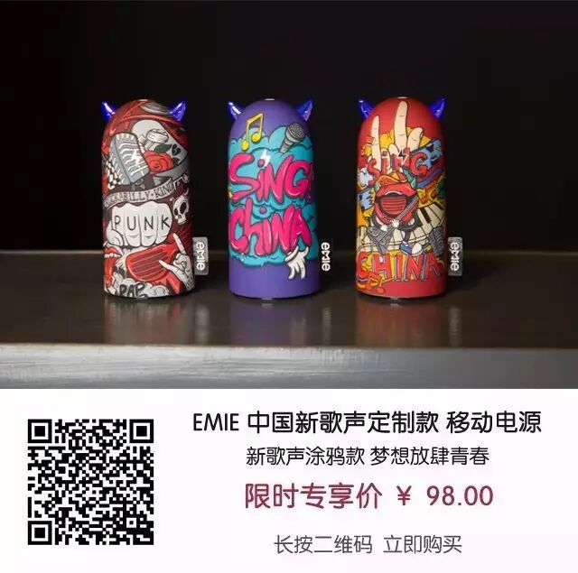这款高颜值的移动电源,让你的音乐永不断电。全身上下无不感受到新歌声的能量:个性涂鸦包裹全身,PUNK、紫色、红色三款样式可选。
