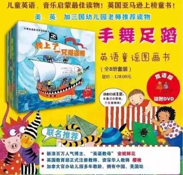 孩子最爱的《手舞足蹈英语童谣图画书》来啦!让孩子用肢体学英语!这套英语童谣绘本是近年来在外国广受好评的音乐绘本之一,适合0-8岁孩子磨耳朵。不仅媒体评论铺天盖地,幼儿园、家长们也非常踊跃