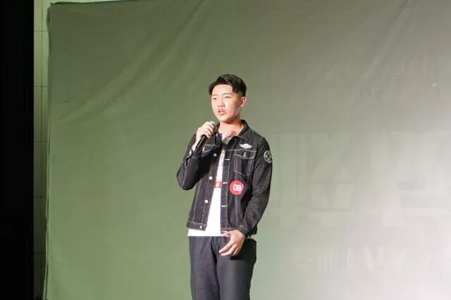 在进行第三轮决战之前,神秘嘉宾突然降临,将现场气氛推向高潮——张敬杰学长一袭牛仔迪科风,戴着黑色墨镜(这造型满分!)掌控舞台,边唱边跳,台风十足,气场全开,与台下观众频频互动,还在摄像机前耍帅,这位学长可以说是十分拉风了!