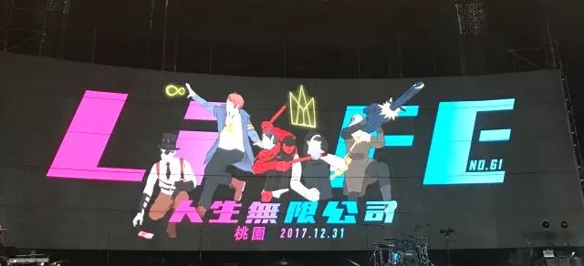 阿信:五月天欢迎大家光临2017年里面的最后一场人生无限公司,也预先欢迎大家来到2018年里面的第一场人生无限公司,掌声欢迎——吉他手石头!