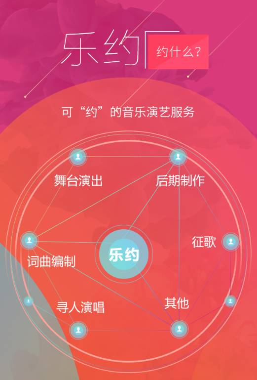 乐约,就是搭起二者的桥梁第三方平台,让音乐人靠提供音乐技能服务,实现音乐价值;让市场寻到对味合作伙伴,实现任务。