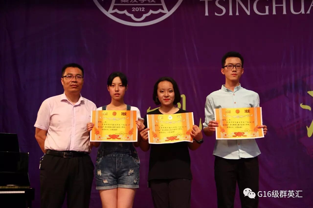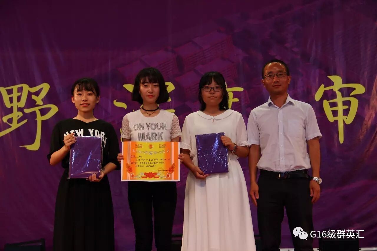 经过紧张激烈的角逐,最终摘得桂冠荣获本届英文歌曲大赛一等奖的班级为G1610班,其余各班分别评选出二等奖、三等奖及优秀奖。奖次由低至高分别请两位外教Sam和Abby、初一年级主任张震宇老师、英语教研组组长侯鸿兵老师及高一年级主任仇国平老师上台为其颁奖。主持人依次宣读各奖项得主并邀请选手代表上台领奖。