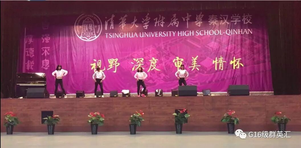 2017年6月22日下午3:30,清华附中秦汉学校第一届“秦汉之声”英文歌曲大赛在学校大礼堂正式拉开帷幕。来自G1605及G1610班的同学以一支青春洋溢的现代舞为比赛热场。