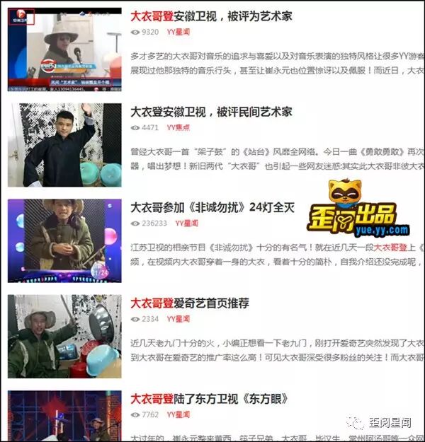 还记得在16年初的时候大衣哥的架子鼓表演被人上传到了腾讯视频,并被百度推荐登上首页,当天点击就破4百万,这个点击量可以说非常高。而大衣哥的表演更是获得了一致的好评,什么“给点10000个赞、人才中的人才”等等,可见大衣哥的表演非常令人喜爱。