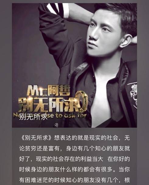 阿哲新出单曲《别无所求》的视频版: