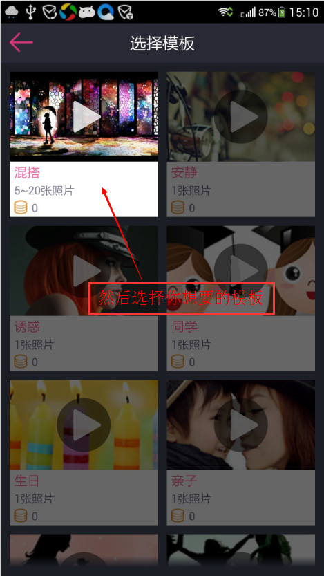 第四步:点击蓝色按钮后跳转到“模板”,选择你比较喜欢的模板