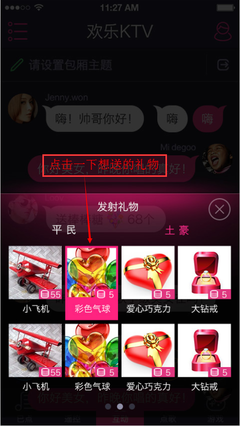 赶紧学习怎么使用“欢乐KYV”来发送精美的卡通道具吧!