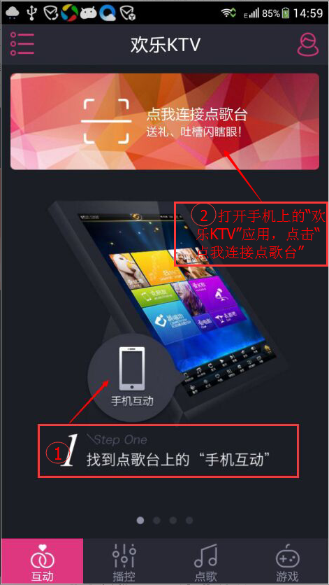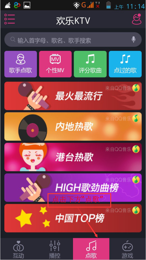 使用手机扫二维码下载”欢乐KTV“手机点歌软件