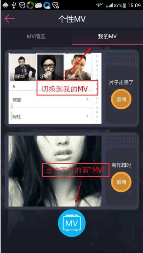 第三步:再切换到我的MV,然后点击面板下方的蓝色按钮“MV”