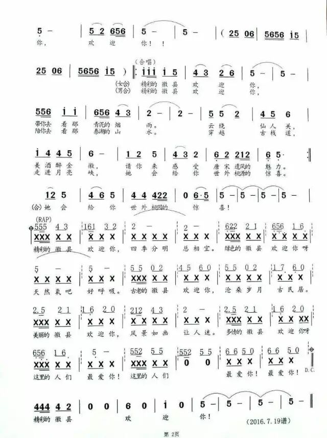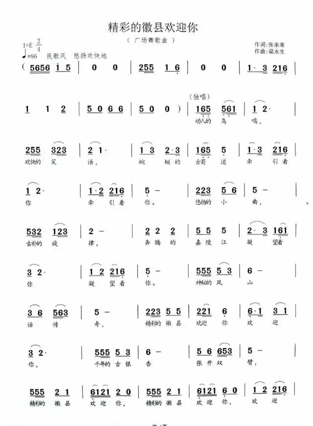 歌曲《精彩的徽县欢迎你》由政协主席张承荣作词,诚邀甘肃省音协会员、曲作家、陇南市文化馆副馆长梁永生老师谱曲的继《我是茶马古道的一条小河》之后又一新作。