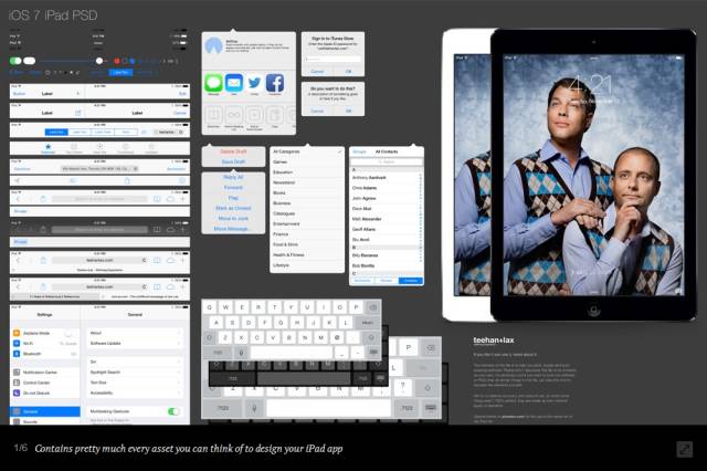 除了提供iPhone界面模板,Teehan+Lax也提供iPad的PSD模板,同样地,模板也已更新至iOS8系统。