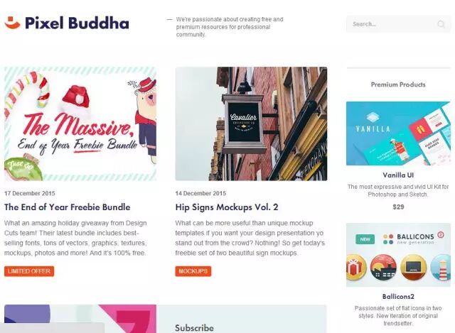 Pixel Buddha 囊括了为专业人士准备的设计素材,有免费的好资源,也有收费的进阶版资源。