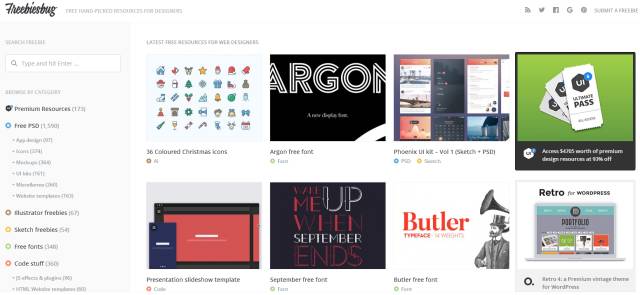 Freebiesbug收藏各类免费网页和UI设计的素材,包含PSD、AI、Sketch、CSS代码段以及网页字体等等相关资源。
