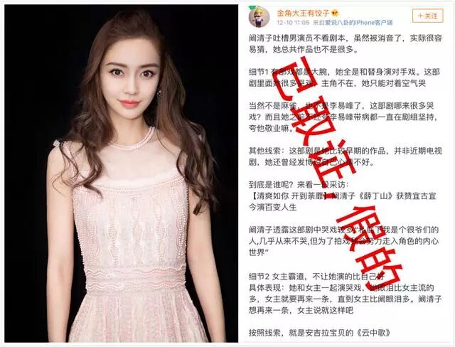 其实明星各种被造谣,最惨的还是angelababy吧,毕竟她可是一月被造一谣啊!就连最近阚清子在节目中曝料某女演员不允许她演得比她好,网友又张冠李戴带上baby。