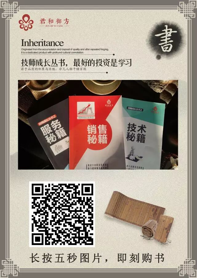 这是一套提升技师综合水准的实用工具书,我愿意为之奉献我15年的所有行业销售精华。——中国足疗养生行业营销大师、君和御方董事 杨济源