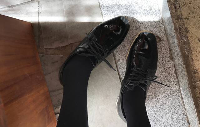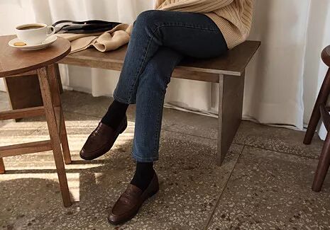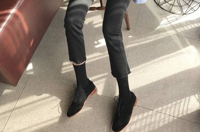 搭配袜子的话就可以穿扁一点的平底鞋,这样会比较显脚瘦