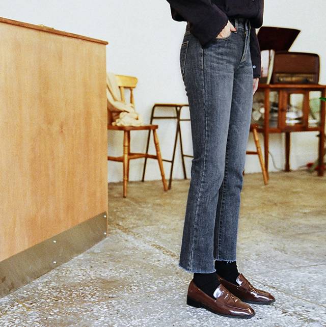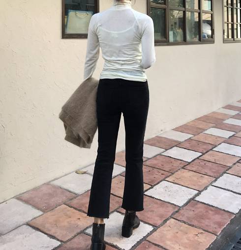 是不是感觉裤子都是微喇的,其实只有最后一条有做微喇的拼接设计,其他都是直筒的