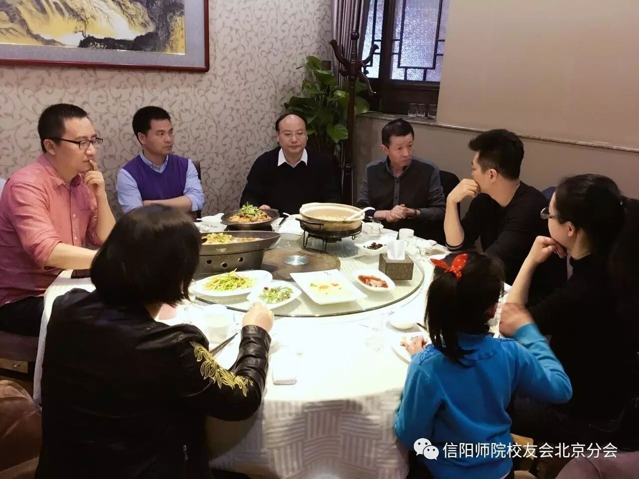 为落实母校校友办关于征集校友歌曲的公告,适逢河南新乡学院副校长、新乡校友会长、80级中文杨士斌校友来京学习,三月十八日晚十九时开始,北京校友会校友主题歌曲创作组召开第一次讨论会同时招待杨士斌校友。北京校友会会长唐超,中国十大男高之一、中国歌舞剧院主演、创作组组长毋攀,校友会理事刘欣欣、陈荣显,创作组成员包守静、申晓枫、张韧出席了宴会。