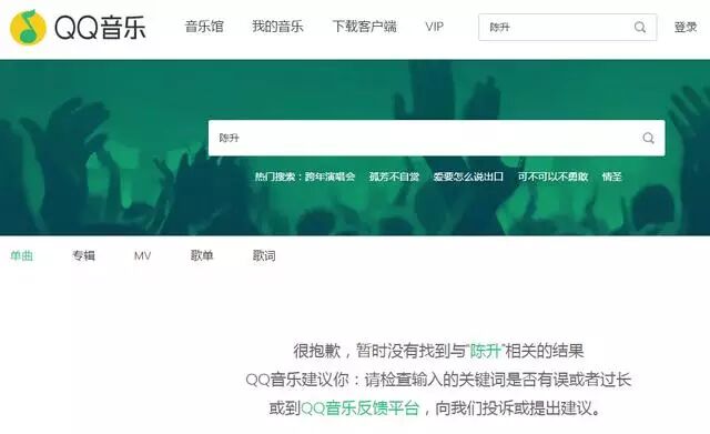 不过,在版权问题之外,一些平台中发生的最大变化是从歌曲试听到歌手主页的消失,而这些同时被“凭空消失”的歌手包括陈升、徐若瑄、乱弹阿翔、、等人。