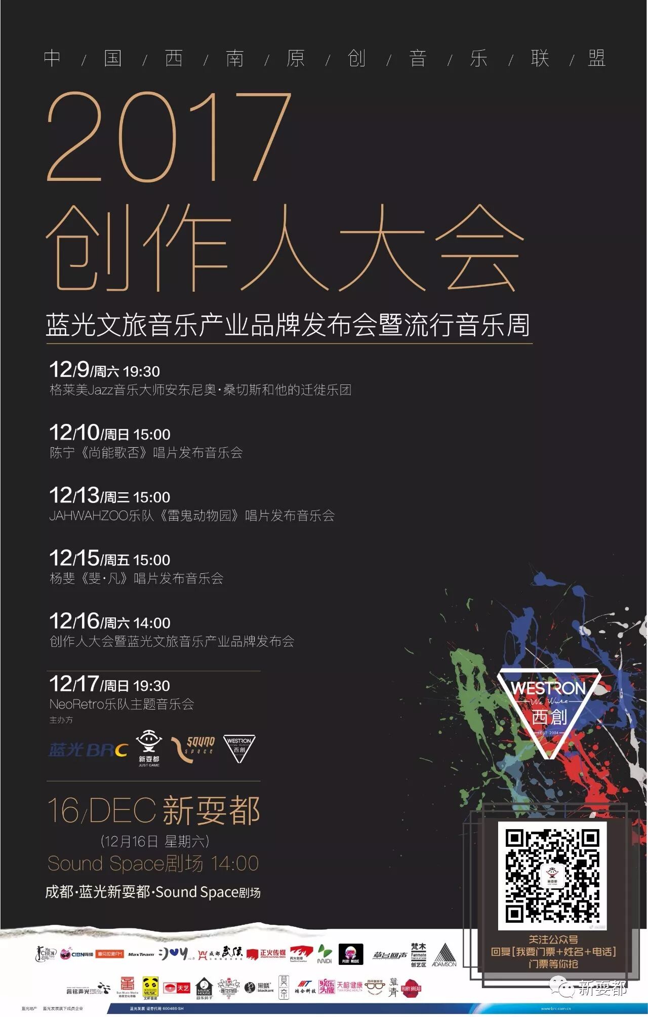 评论区留言,在公众号回复“我要门票+姓名+电话”将有机会获得中国西南原创音乐联盟2017创作人大会门票一张。