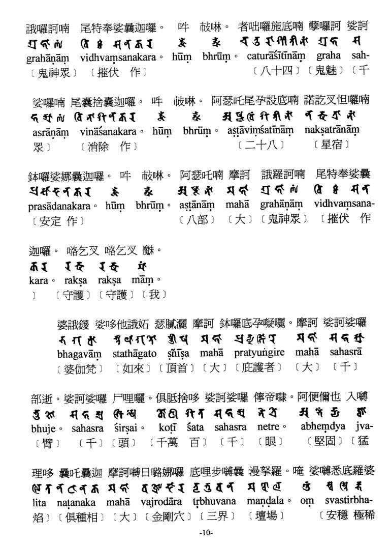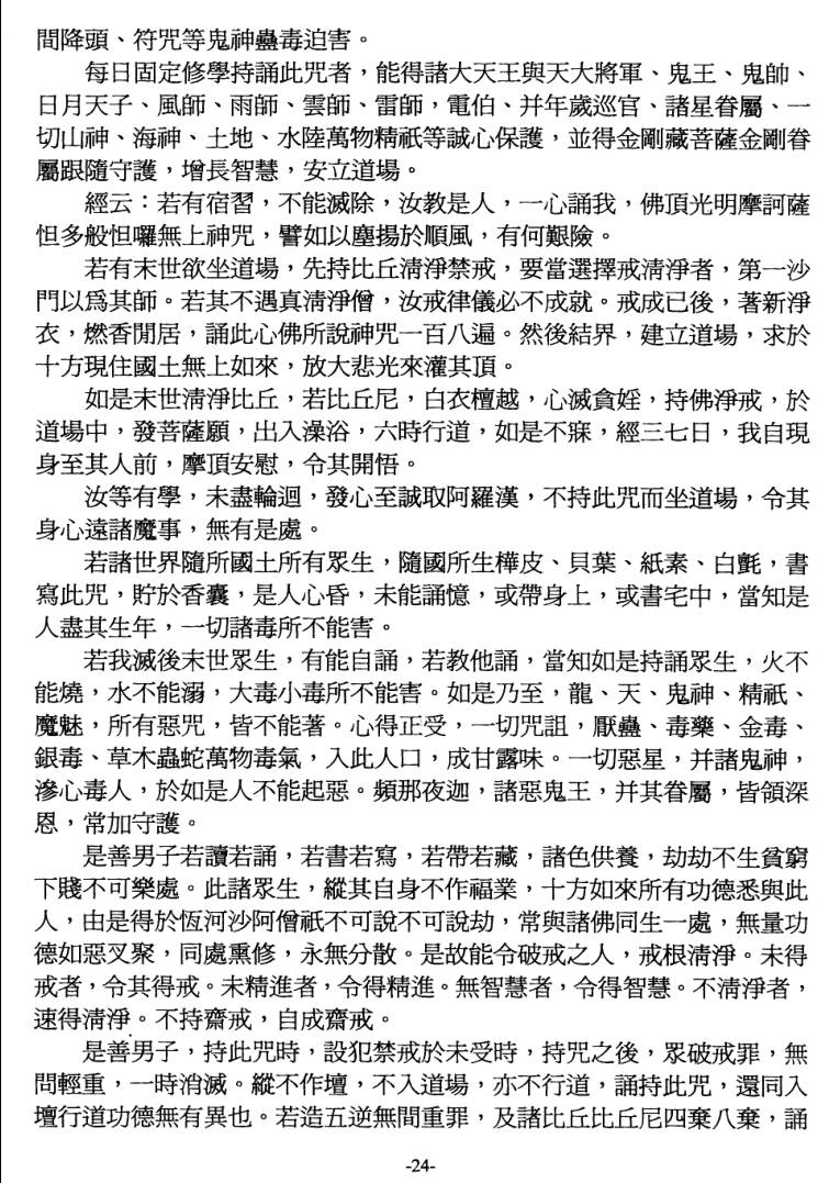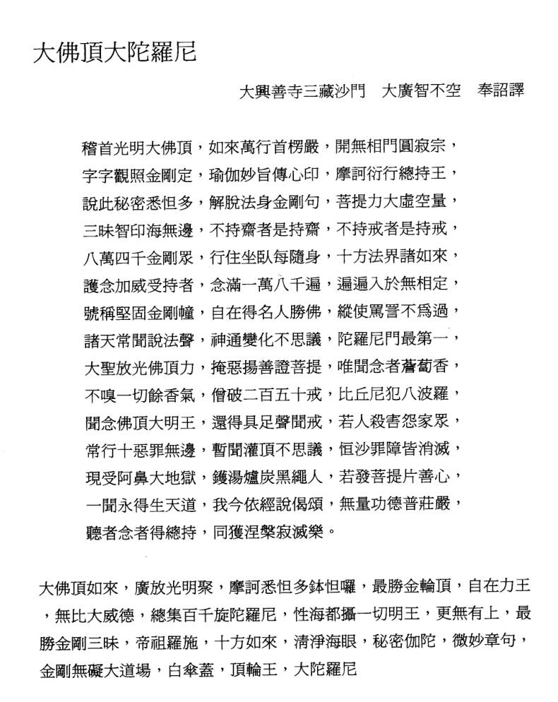 如果受持不了楞严全咒,对于护身结界,遣除魔障,亦可受持楞严心咒: