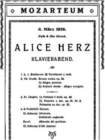 爱丽丝5岁开始学琴,师从李斯特的学生康拉德•安索奇,25岁就开始了个人的钢琴巡演,随后嫁给了一位小提琴家,30岁不到,已是享有声誉的演奏家,热心的听众遍布欧洲。