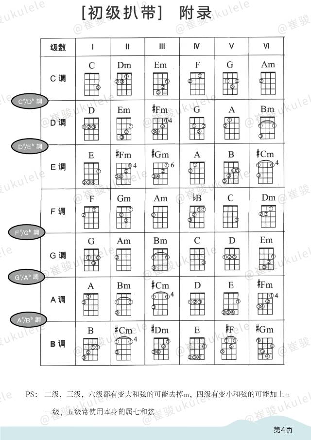 (ps:二级、三级、六级都有变大和弦的可能去掉m,四级有变小和弦的可能加上m,五级常使用本身的属七和弦)