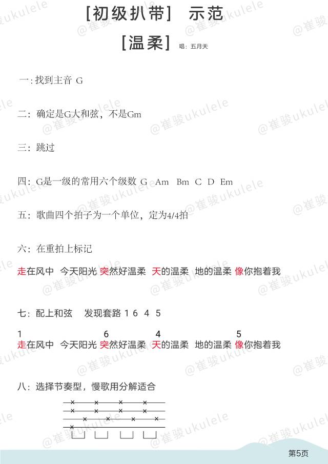 训练方式:模仿出原曲的节奏型,然后再用ukulele模仿出这个节奏型如何表达