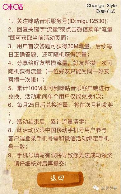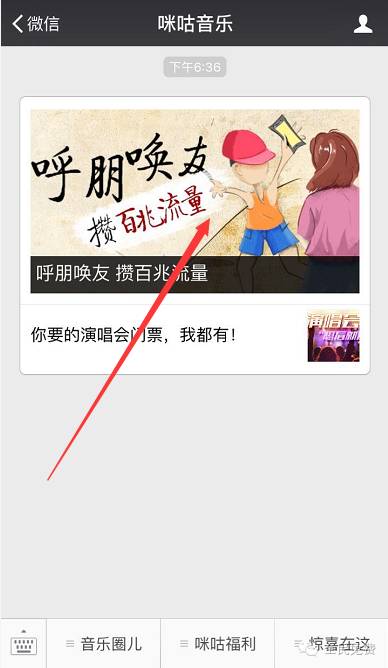 Step 1、查找并关注“咪咕音乐”公众号,点击推送进入活动页面: