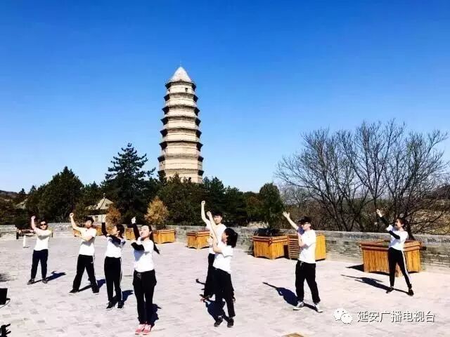 于是,编舞赵瑞在舞蹈动作当中,将腰鼓、秧歌等陕北民俗文化和机械舞、广场舞等现代流行元素融合在一起,并且邀请了九位青春洋溢的年轻人和她一起来表演,胥丹就是其中的一位表演者,来自汉中,现在是延安大学大四的学生,平时就爱好舞蹈的她听说要拍这样一个MV就主动加入了进来,为了把延安的美宣传出去,他们挑选拍摄了延安的一百多个场景,而且每天拍摄下来,这首歌得跳个百八十遍。