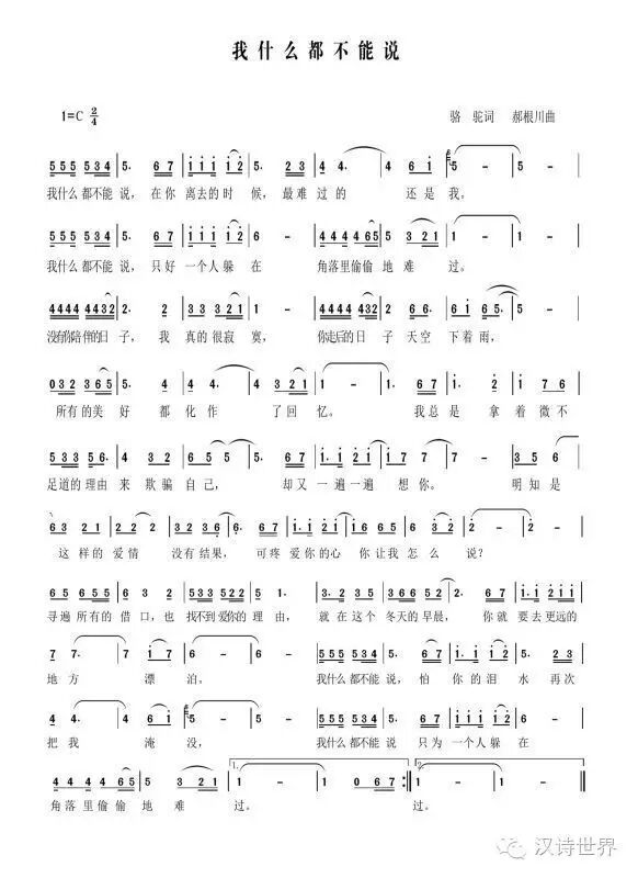 原创歌曲欣赏:《我什么都不能说》 作词:骆驼 作曲:郝根川