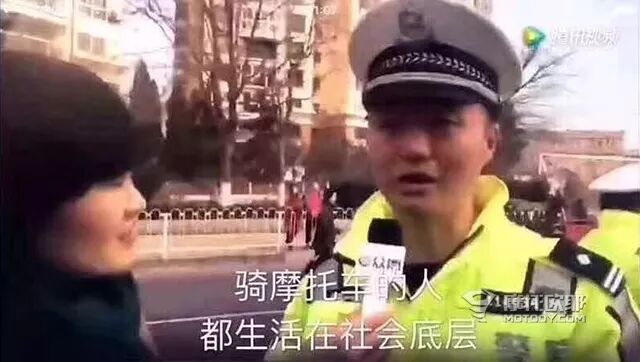 怎么样警察先生?即便我们骑摩托车的人都是社会最底层的人,也是遵纪守法的合法公民,不应该受到您的歧视;难道在您的心目中,警察才是社会的上层?摩托车爱好者都是社会的底层吗?
