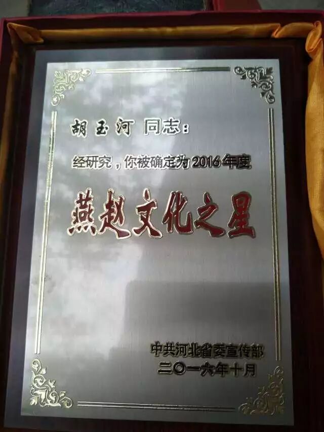 2016年被省委宣传部评为“燕赵文化之星”;