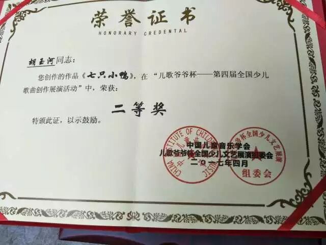 2017年4月,原创少儿歌曲《七只小鸭》荣获全国二等奖。