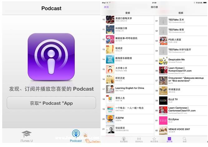 >> 上面内容比较丰富。你可以选择你喜欢的,比如,BBC Global New Podcast 每天都有更新。选择订阅即可加入到“我的播客”里。