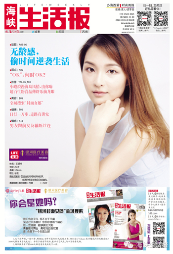 本报携手银河医疗美容全城寻找“封面女郎”,时尚、青春、有梦勇敢秀出来。一经认可,封面life女郎可获由银河医疗美容提供的5000元美丽大奖(3400元O’Cherry东方樱花美肤组合套组+1600元银河美容大礼包)。并将于厦门日报读者节现场,展示才艺风采,与十万读者见面。
