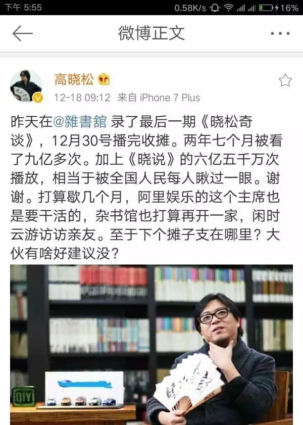 不少网友喜欢他的才气,爱看他的《晓松奇谈》。
