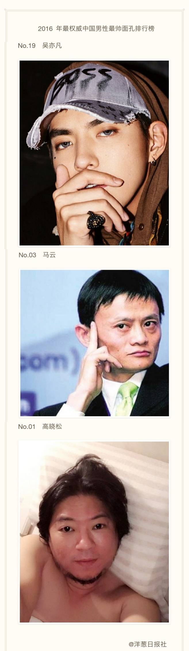 非著名媒体:洋葱日报社,曾根据不完全统计得出了《2016年最权威中国男性最帅面孔排行榜》。