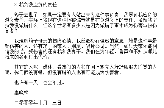 大概来说,就是筠子先后与高晓松、汪峰谈了恋爱,在与汪峰处在恋爱与分手边缘的时候,在家中了,终年23岁。