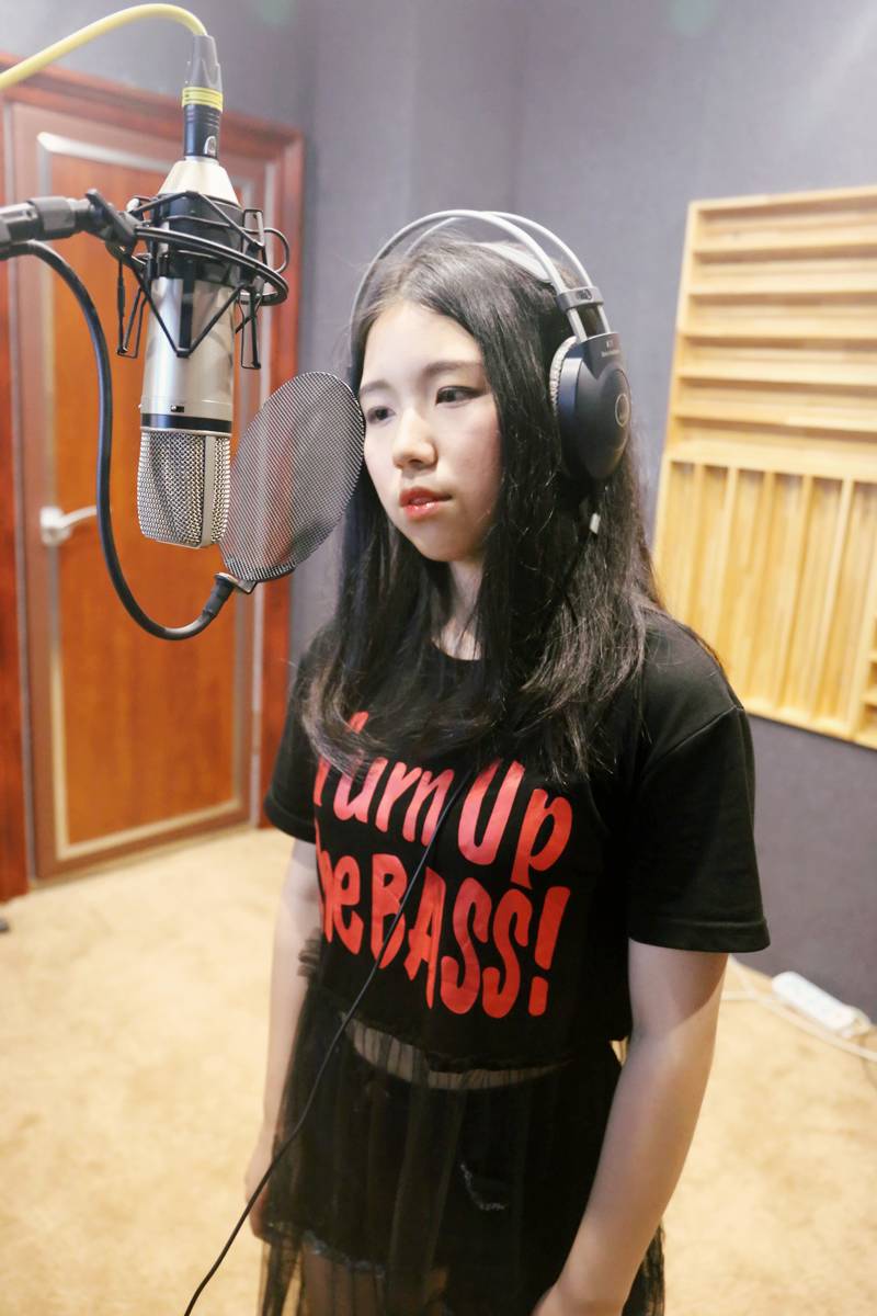 ↑图为浙师大女生朱雨淅在萨日朗影音私享会录歌